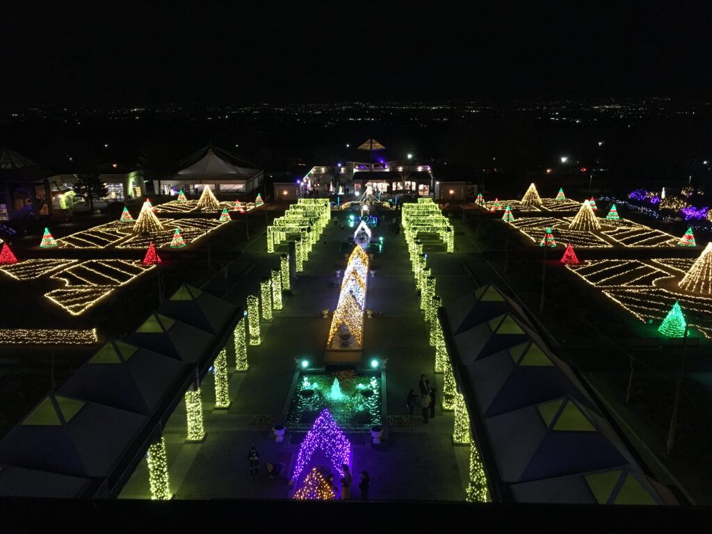 イルミネーションも素敵なのですが、標高が少し高い位置にあるので、フラワーパークからの夜景も綺麗でした。