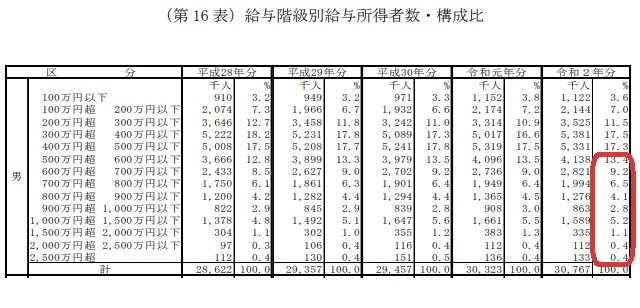 この調査は1年間を通じて勤務した給与所得者が対象で、この数字は男性のみです。