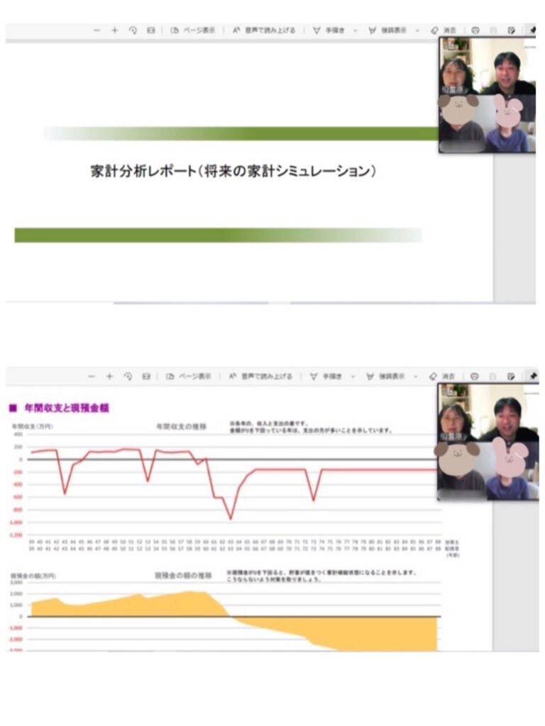 引っ越しやこれからお仕事の移動もある中、これからのライフプランを見える化したいということでお手伝いさせていただきました。